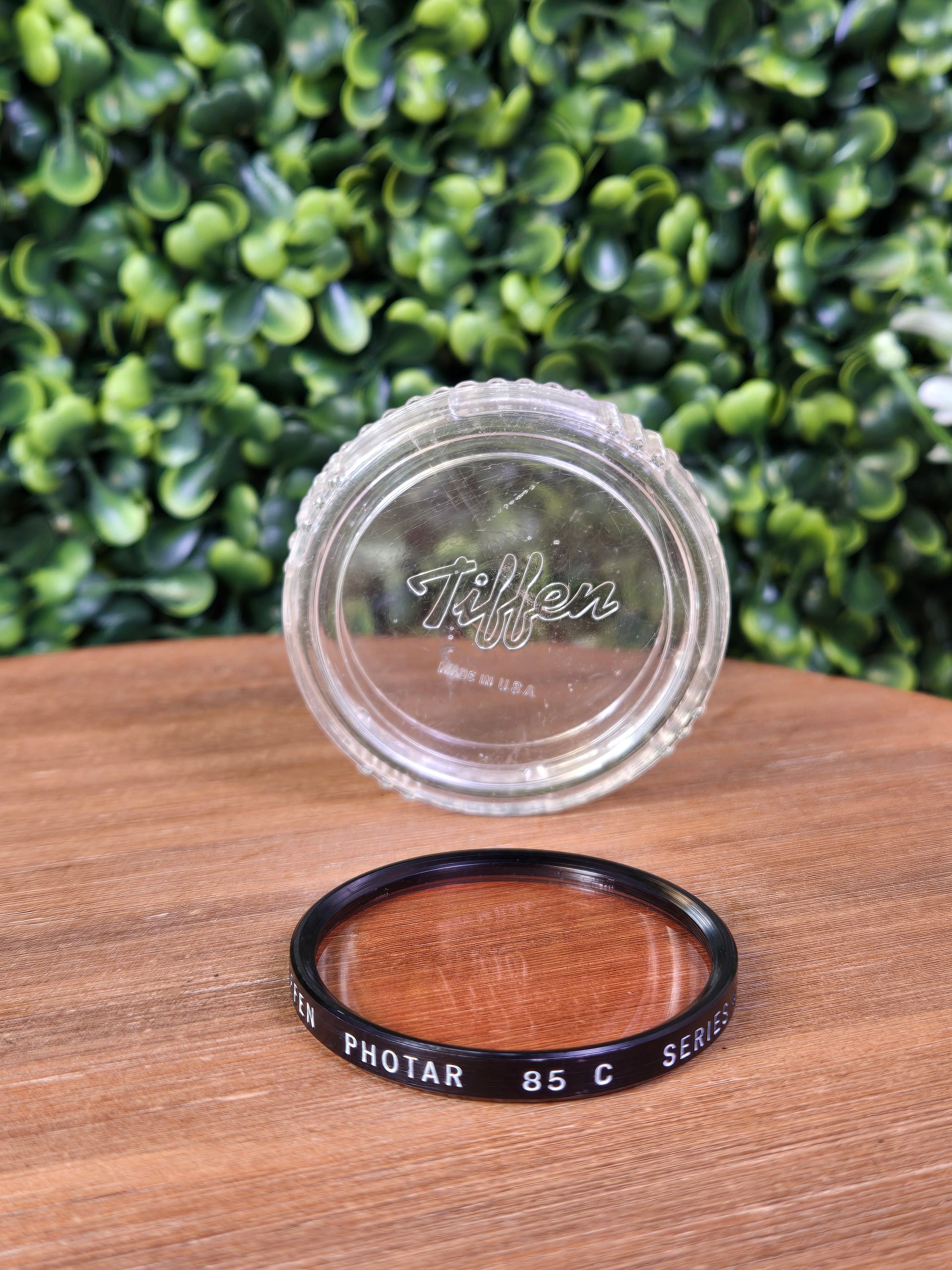 The Tiffen Photar (85C) Series #6 Lens Filter is a premium warming filter designed to balance color tones and enhance natural light in outdoor photography. Perfect for daylight film or digital shooting, this 85C filter gently warms images for true-to-life skin tones and vibrant landscapes. Crafted with Tiffen’s renowned optical glass and durable metal construction, this pre-owned filter includes its original case and is ideal for photographers seeking reliable vintage gear with professional results.